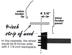 NOTE: •Standard wheels with more than 4 1/2" backspace will NOT clear disc brakes. •Wheels are identified by their inside (wheel width) measurement. Overall width is always one inch wider. For example: A 15 X 7 measures 7" bead-to-bead and 8" overall. |